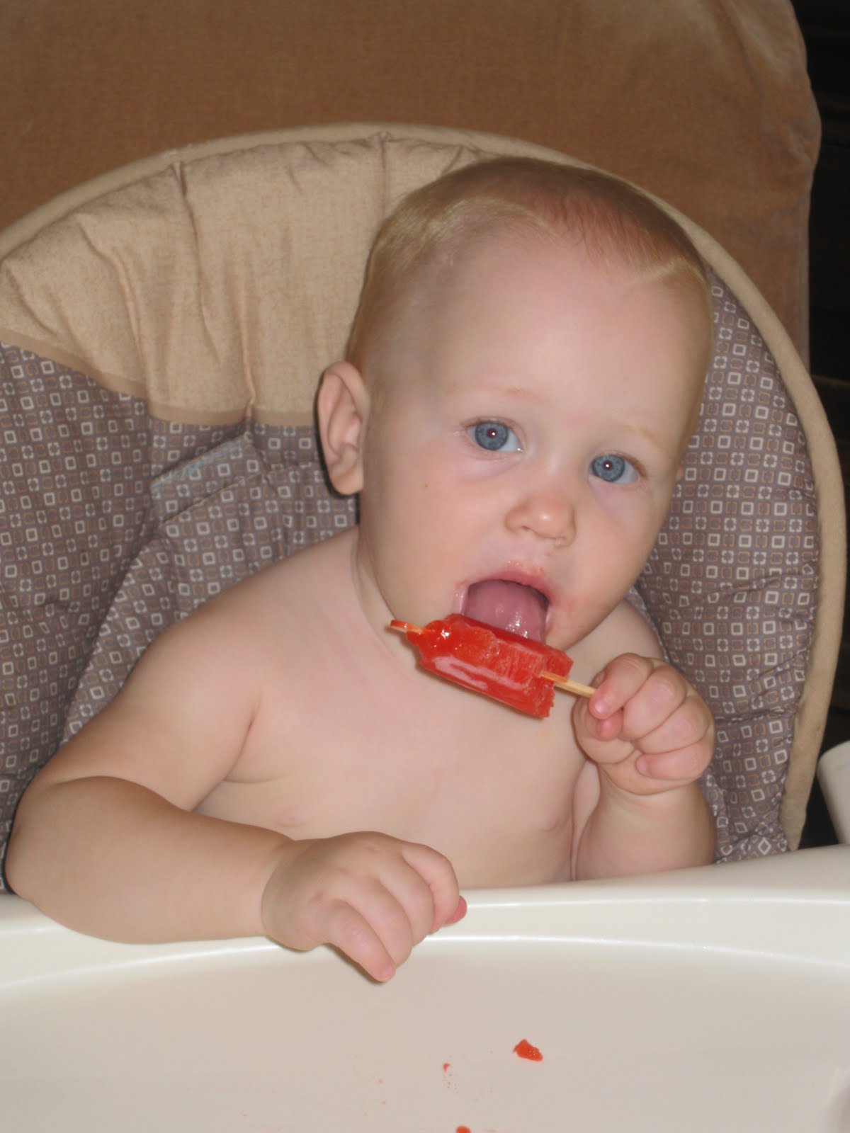 On Friday, Laylie had her very own first special treat. A RED POPSICLE!! Here are some pictures before eating the treat and after, where the popsicle was in her tummy and all over her face. So cute!!